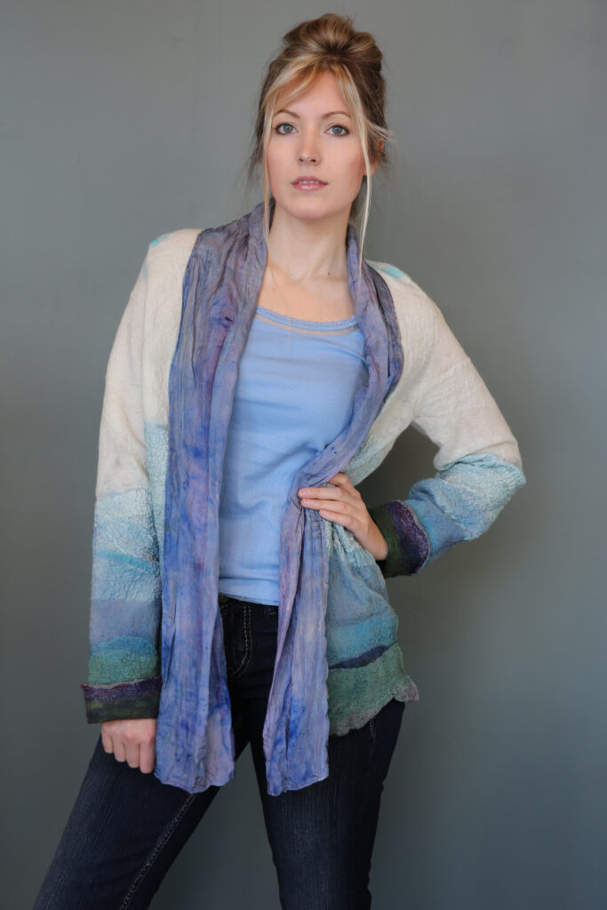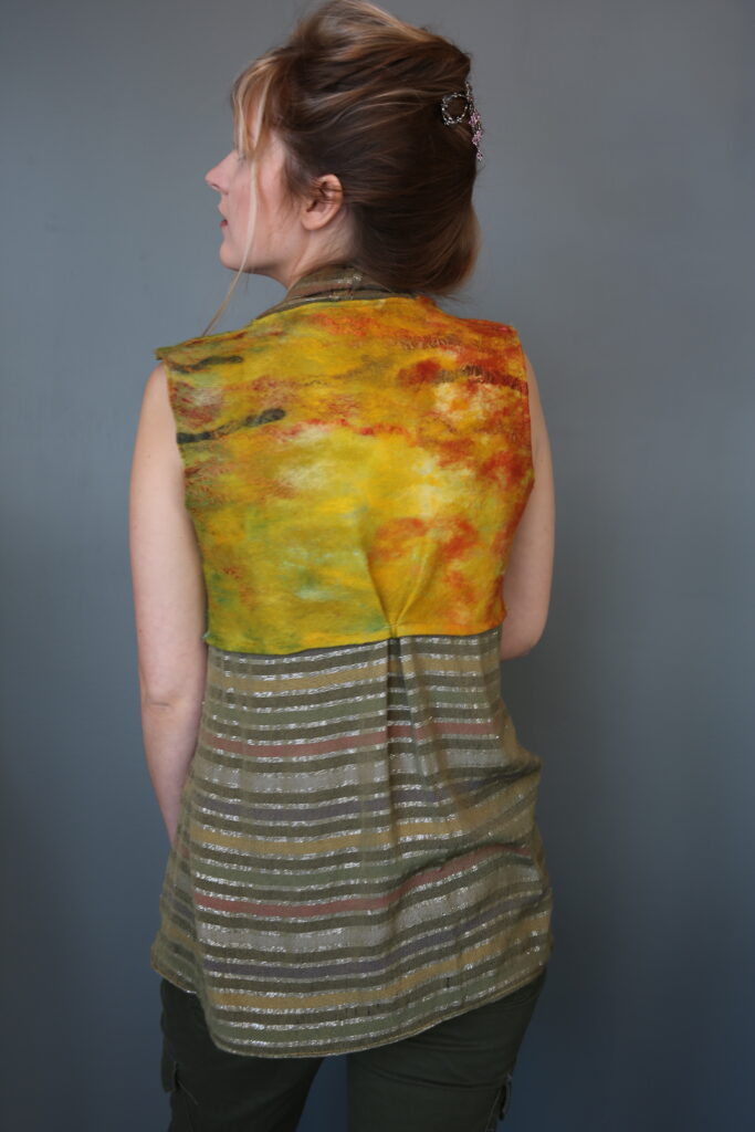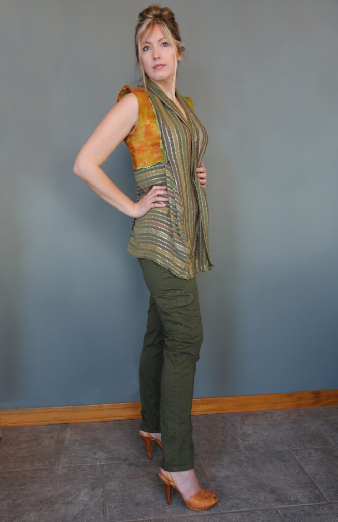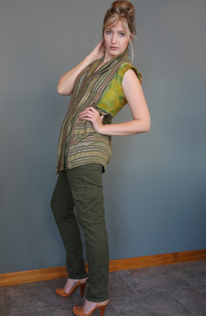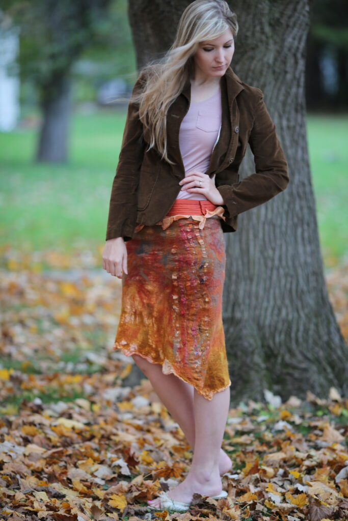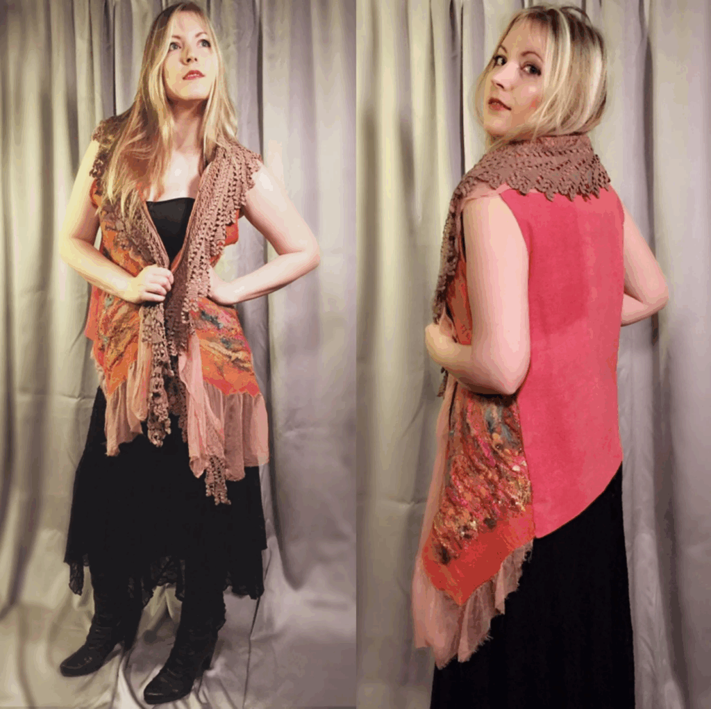 I’ve always believed that clothing has the power to tell a story. Some pieces carry memories, others carry emotions—but the most special ones carry the hand of the maker. I’ve had the chance to step into some of those stories—literally—by modeling pieces created by my magical sister-in-law, fiber artist, Natasha Lehrer Lewis.